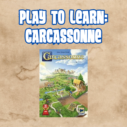 In the second blog post in the Play to Learn series, we will look at the game Carcassonne. This game is similar to Settlers of Catan, in that it is a Euro-style game. The game is based on mechanics versus story and theme. Carcassonne is a tile placement game. Players are looking to match tiles and place tiles to gain experience points (XP) . Tiles are picked at random and have illustrations of southern French landscape. Meeples represent people in the game and score points for the players. There are four types of tiles in the game. Farmland,…